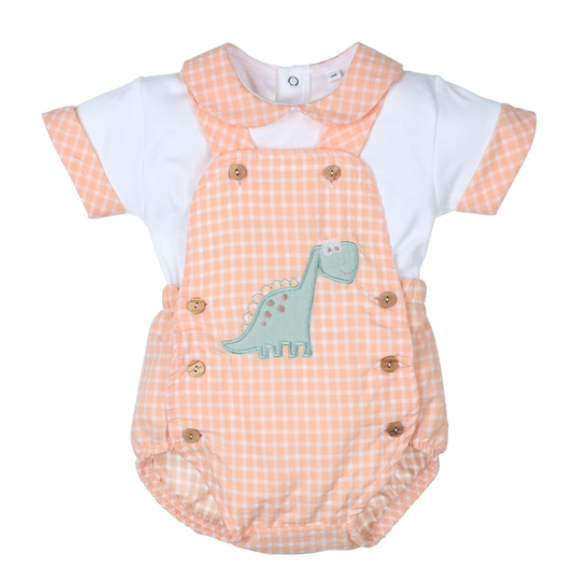 Este encantador conjunto para bebé niña combina comodidad y estilo en cada detalle. La blusa blanca con cuello vichy naranja y bordado de pajaritos aporta dulzura, mientras la falda con estampado floral y lazo lateral ofrece un look fresco y veraniego. Ideal para ocasiones especiales o el día a día, garantiza libertad de movimiento y un toque adorable que enamora a primera vista