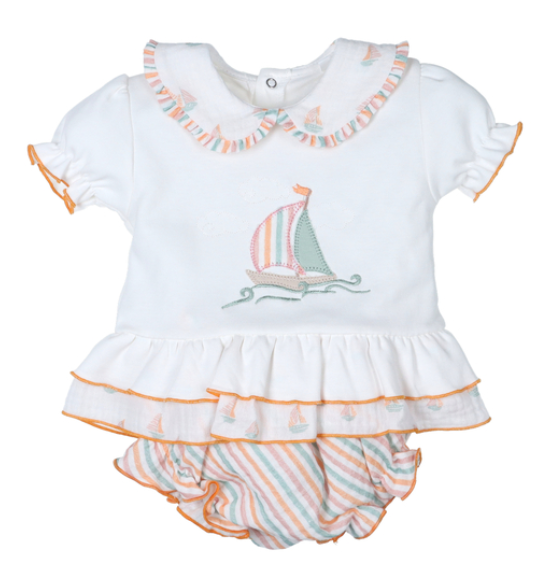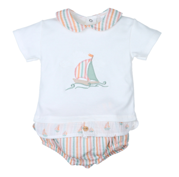 Conjunto bebé niño con velero bordado
